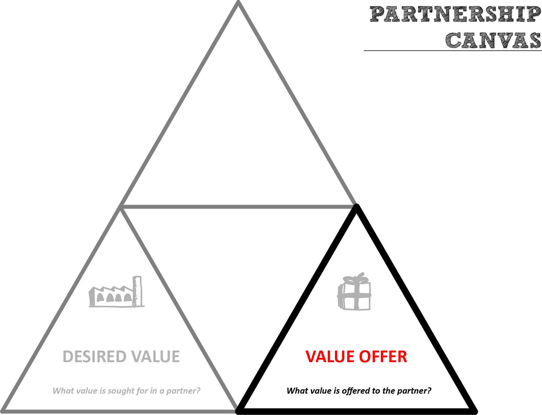 The second question is about your own contribution to the partnership. If you have identified what value you desire in a partner, then you need to develop a matching offer that connects with that value. A value offer is required, which is based on one or more elements from your own business model. An effective offer either complements or enhances the value you would desire from a partner. Only if this connection is made, do you have a basis for creating a relationship.